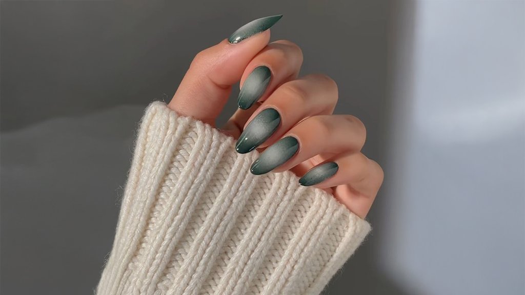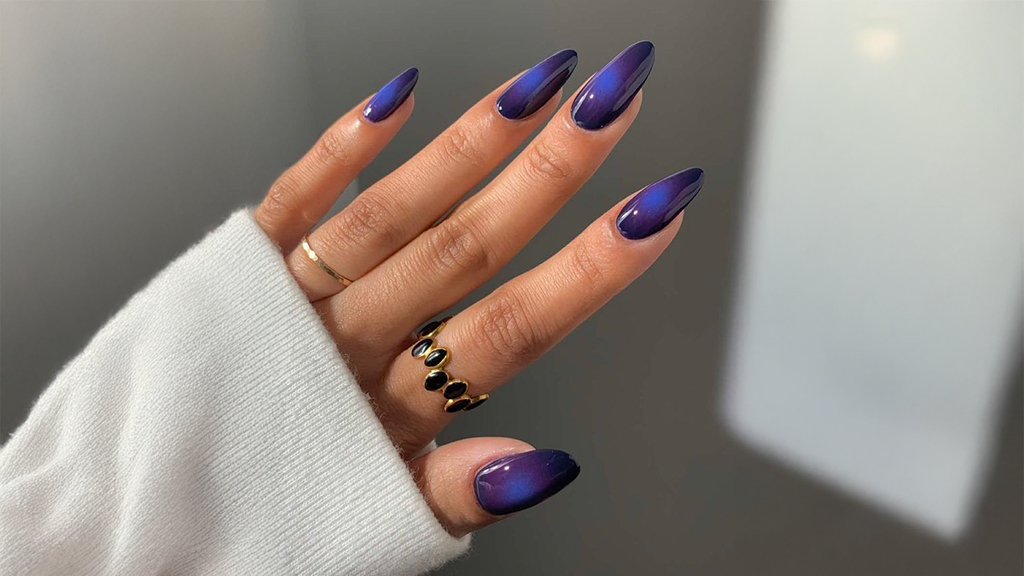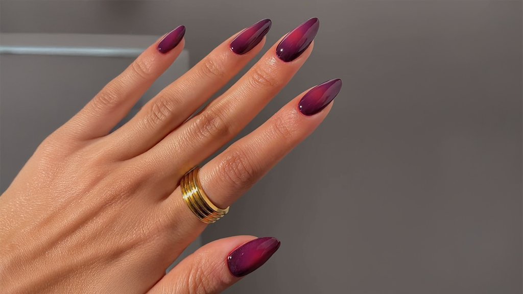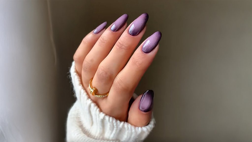 Aura nails have a soft, airbrushed halo that glows from the center of each nail, like a photographed aura. The blend can be sheer or high contrast, single shade or two-tone. Techs create it with an airbrush, sponge, or cat eye magnet over gel, then seal with a glossy or velvet-matte top coat. It works on any length and looks great on almond and oval shapes. Add a thin French edge, chrome mist, or tiny crystals if you want extra pop. For fall, think berries, plum, indigo, forest green, smoky lilac, espresso, and deep wine. A few examples of non traditional ideas that fit the season below.
